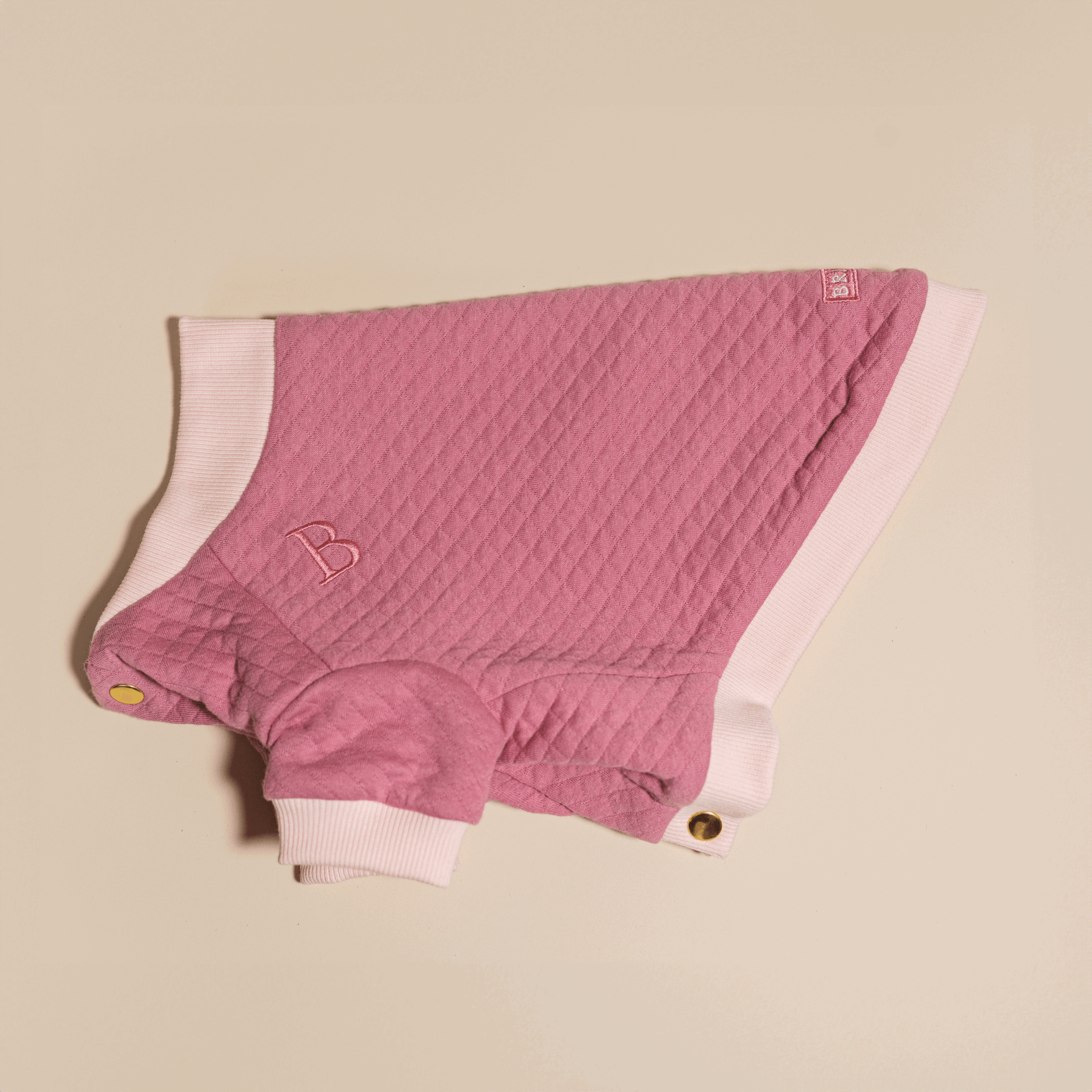 A sportos kinézetű pamut, mályva színű bomber dzsekink ideális választás kutyáink számára. Szinte olyan, mintha egy virágzó ösvényen sétálnánk, miközben a dzseki könnyed, mégis strapabíró anyaga biztosítja kényelmüket. Legyen szó egy rövid sétáról vagy egy aktív játékról a parkban, ez a dzseki mindig stílusos és praktikus választás marad.