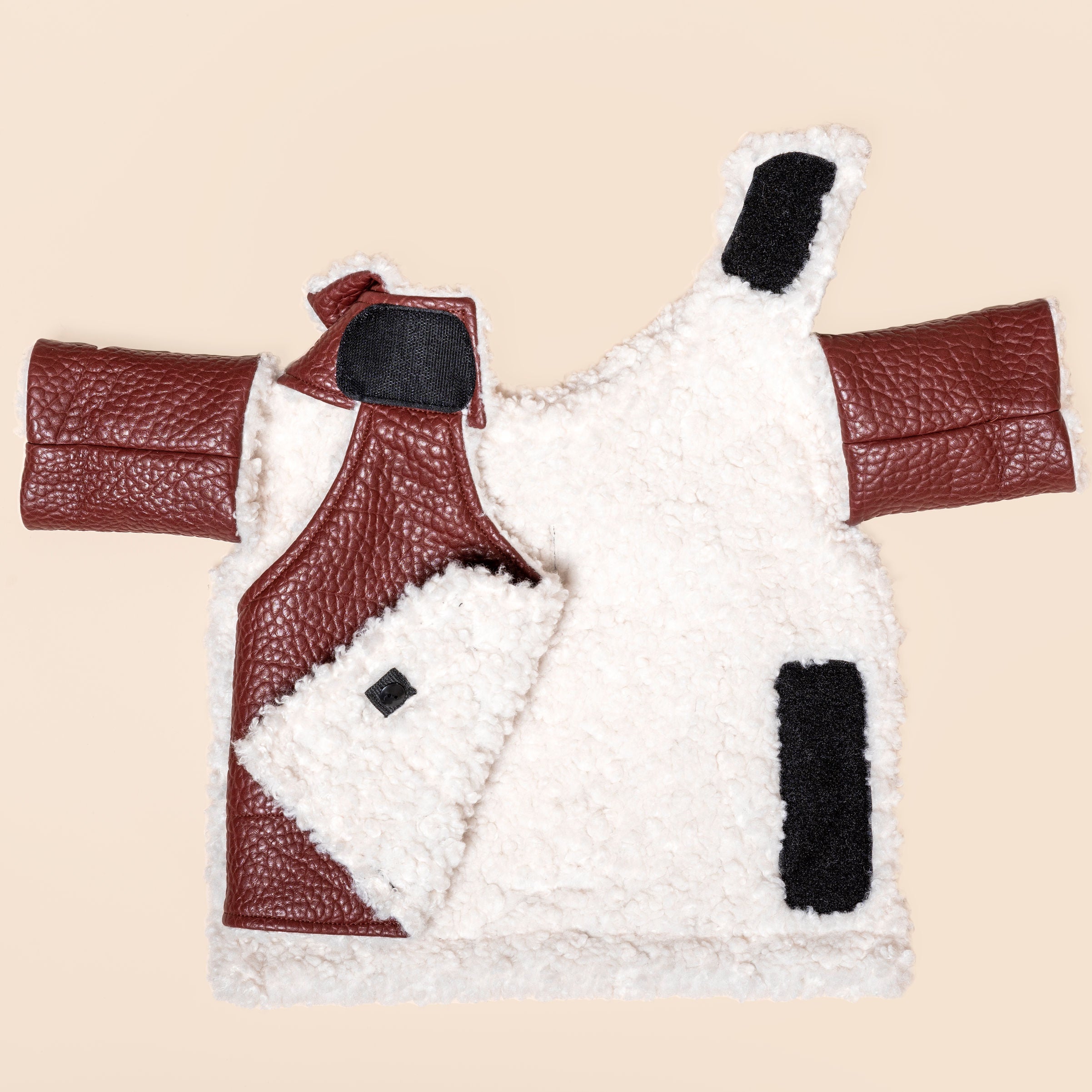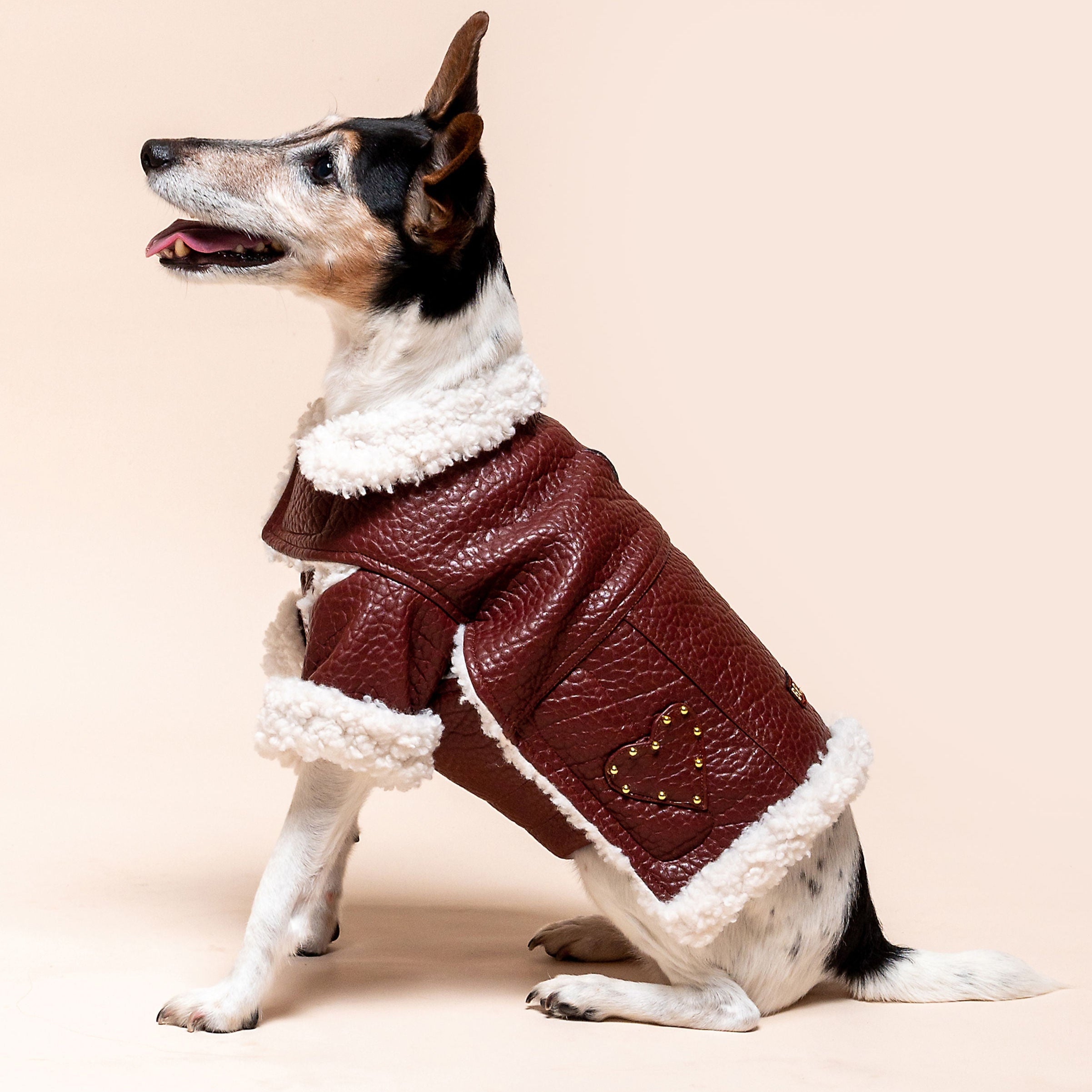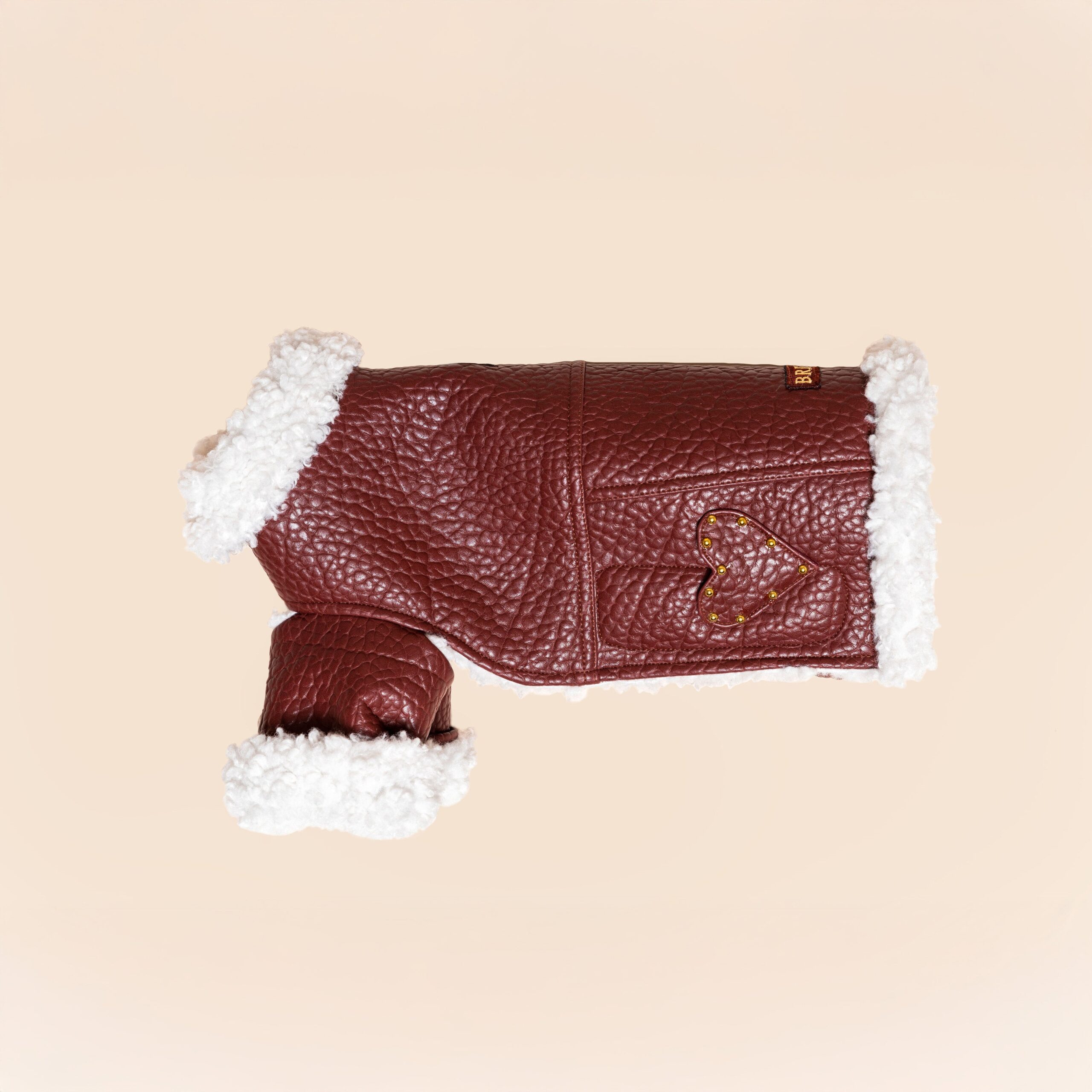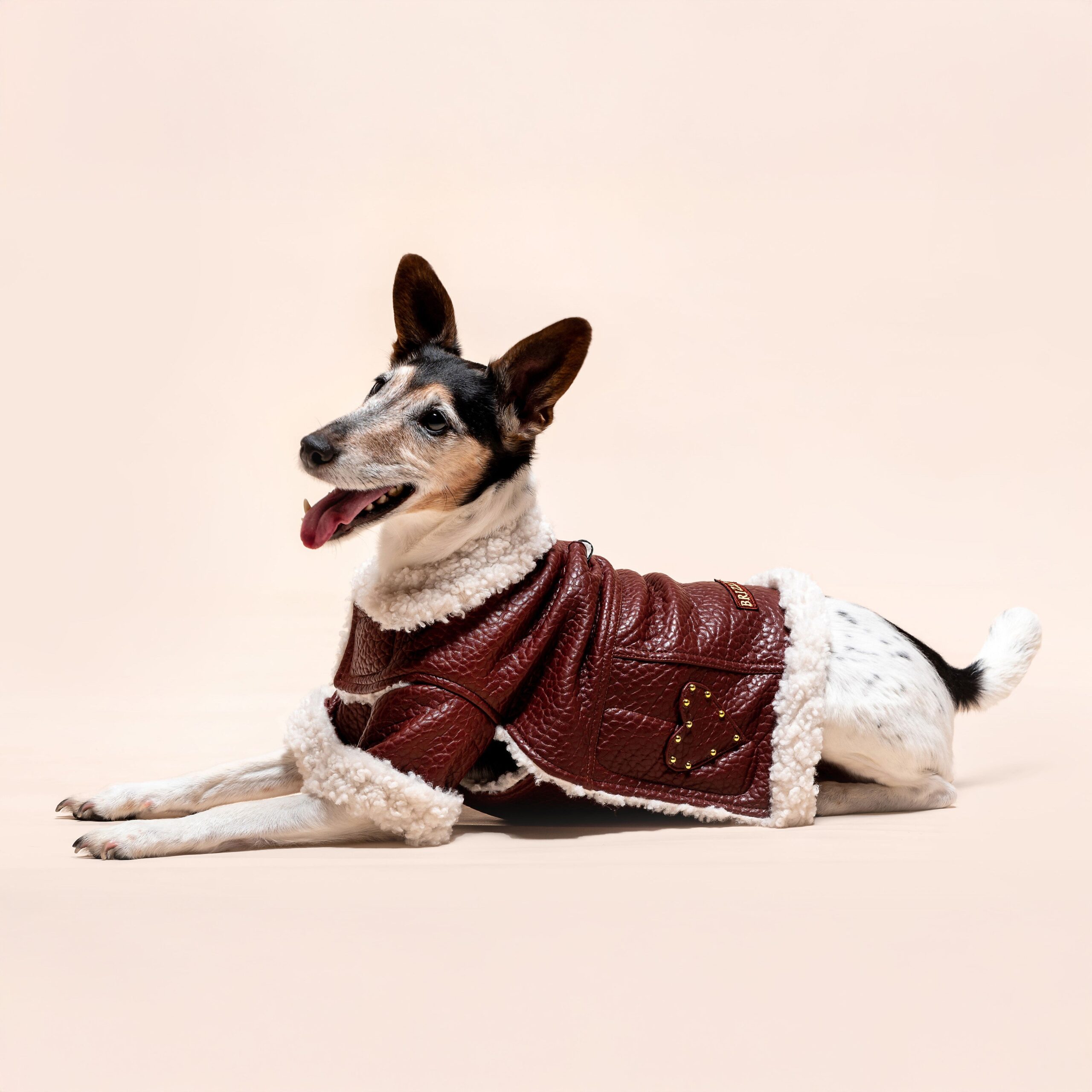 A WILD CHERRY kollekció vagány újdonsága, a Cherry kabát a klasszikus motoros dzsekik világát idézi meg a kutyadivatban. A mélybordó, finoman erezett anyag és a kontrasztos, puha szőrme bélés egyszerre sugároz erőt és eleganciát, miközben kényelmes meleget biztosít a hűvös napokon.