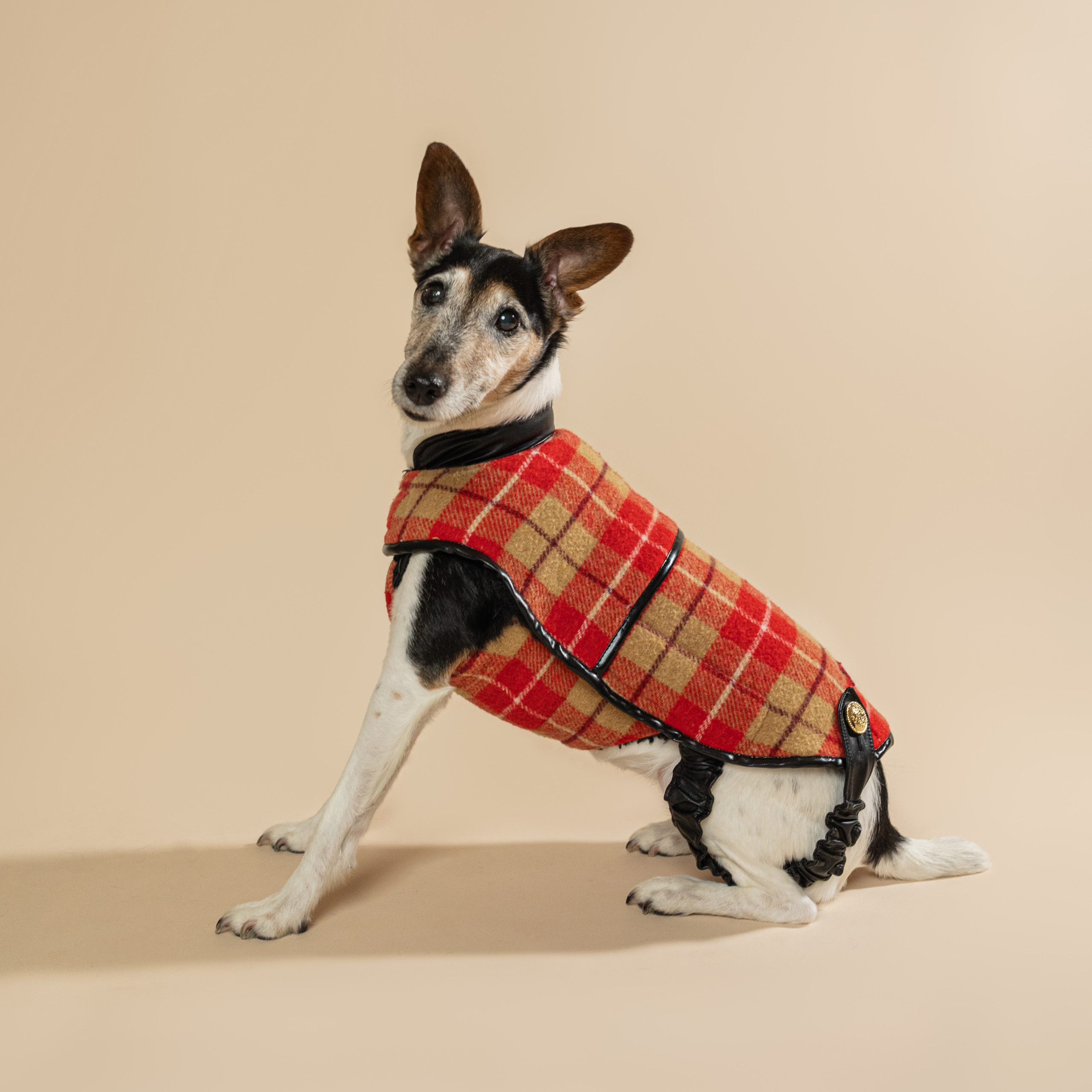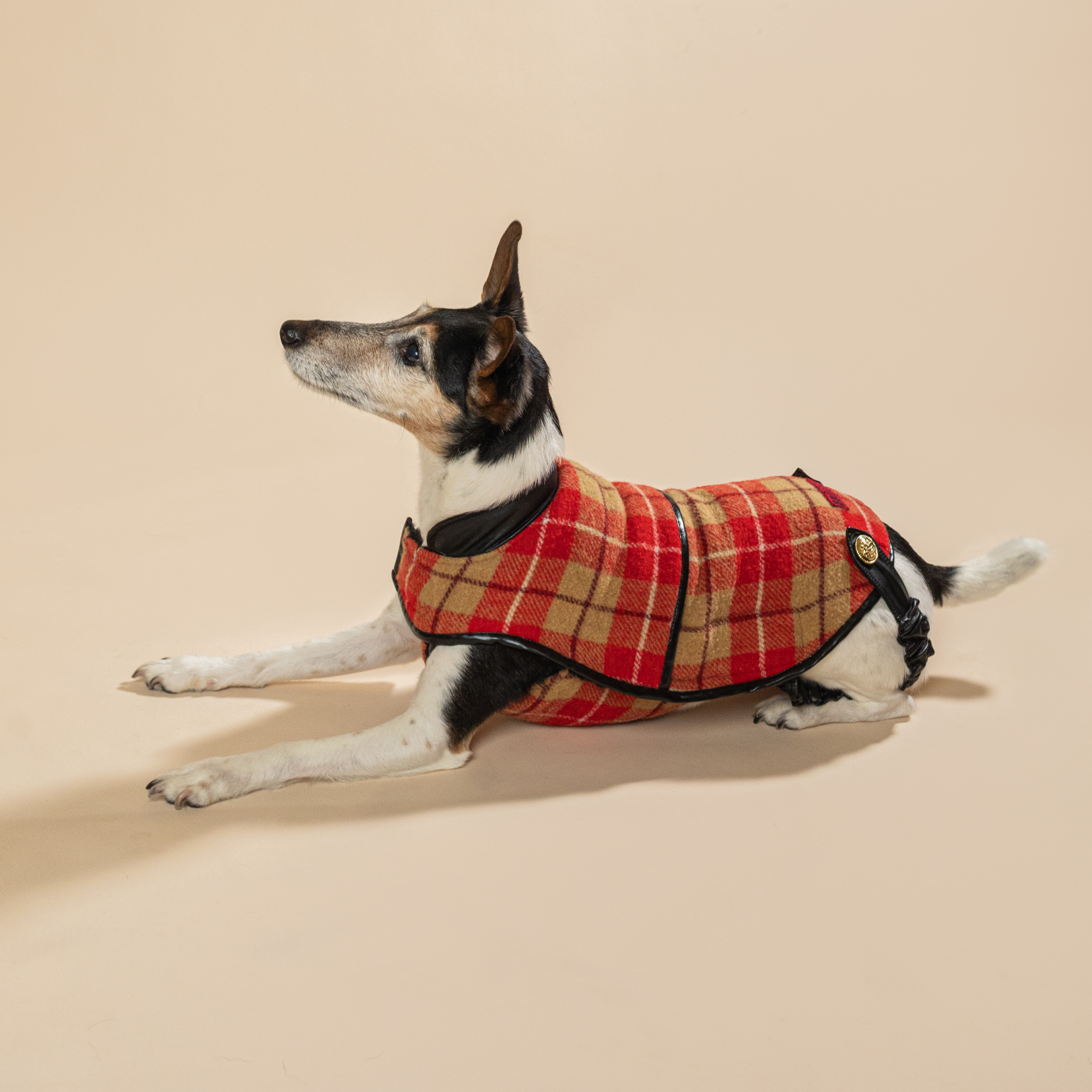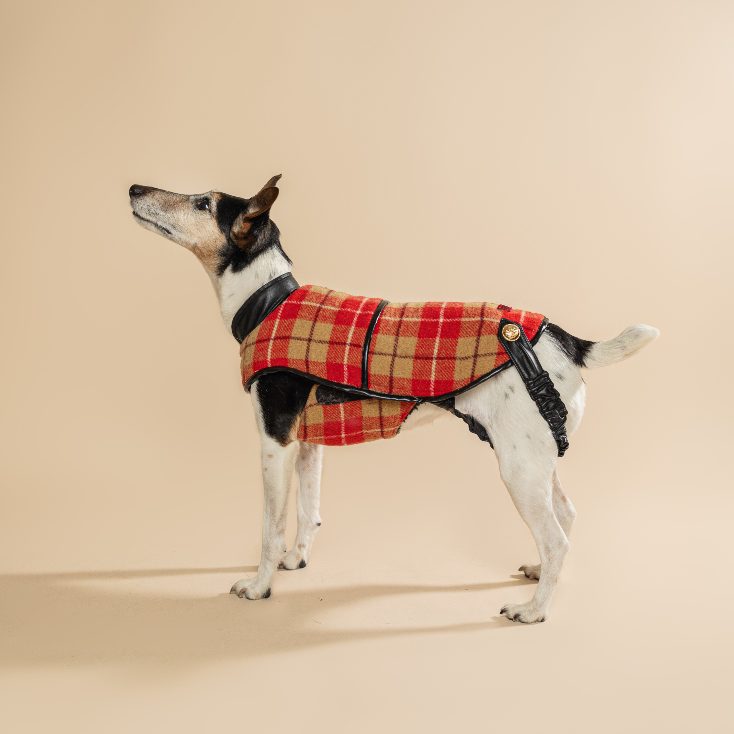 A ruha hagyományos színkavalkáddal idézi meg a karácsony hangulatát, melyet a skótkockás díszítése tesz teljessé. A fényen megcsillanó prémium műbőr gallér és szegélyek a bronz fém csatjainkkal kiegészülve finom és letisztult fémes csillogással, koronázzák meg az ünnepi öltözetet. Kívülről elegáns textúrájú gyapjúszövet borítással láttuk el, míg belülről egy meleg, de mégis komfortos, puha tapintású fekete színű polárral lett bélelve. Kabát exkluzív megjelenését egy ritka piros és bézs színkombinációjára épülő szövet adja, melyet a bronz kiegészítők tökéletesen kiegészítenek. Egyedülálló megjelenést biztosít viselőjének és gazdájának egyaránt, akiknek biztosan nem kell aggódniuk, hogy szembe találkoznak vele az utcán. Termék kizárólag nagyon limitált darabszámban elérhető, amíg a készlet tart.