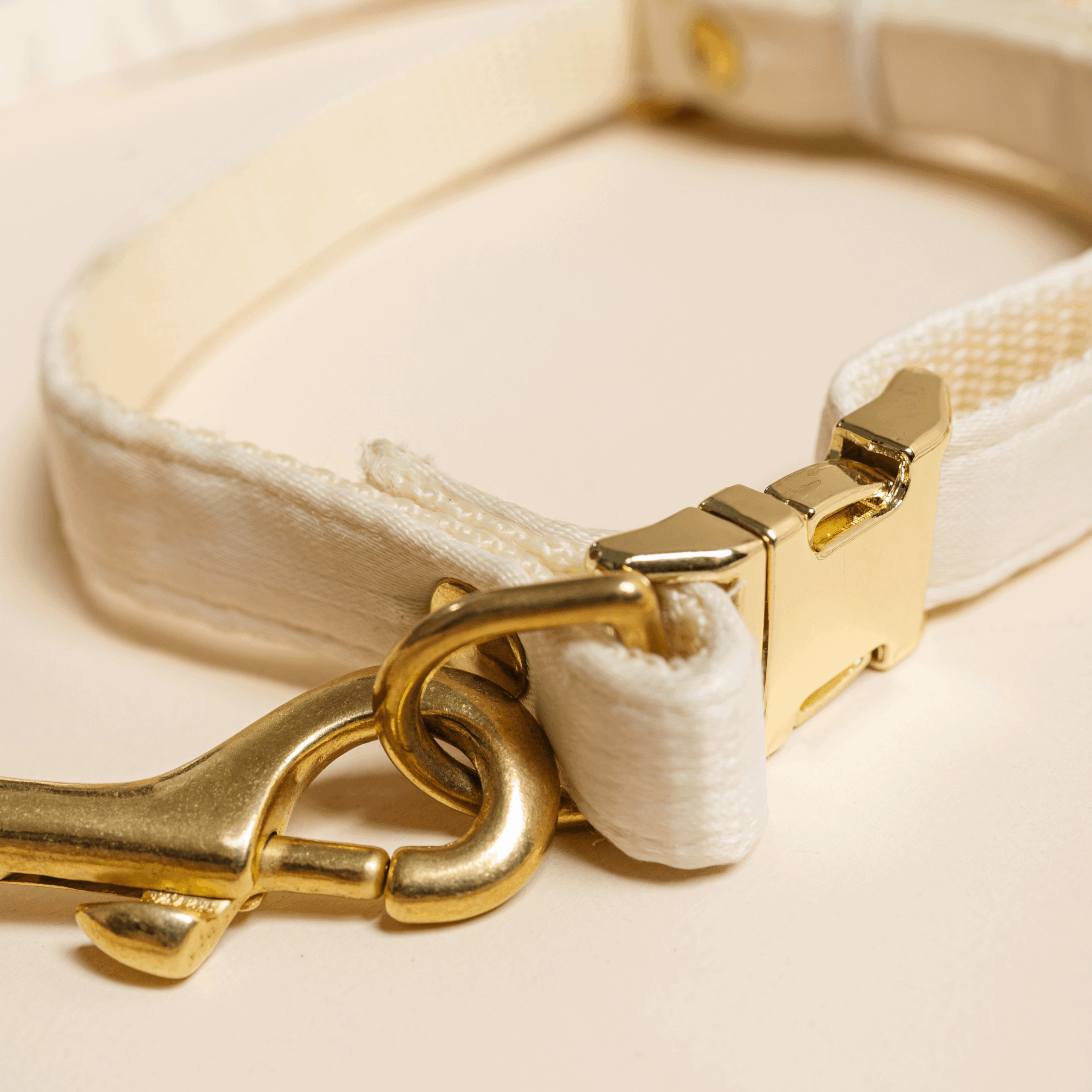 Nyakörvünk a nagy napra és a mindennapokra egyaránt tökéletes választás. A klasszikus fehér szín és az arany részletek eleganciát sugároznak, miközben praktikus állíthatóságot biztosítanak kutyusod számára. Rózsafej kialakításának köszönhetően egy mozdulattal könnyen felrekható vagy leszedhető. Legyen szó a legfontosabb alkalomról vagy egy napi sétáról, egy stílusos kiegészítő, mely minden helyzetben kiemeli a kutyusod megjelenését.