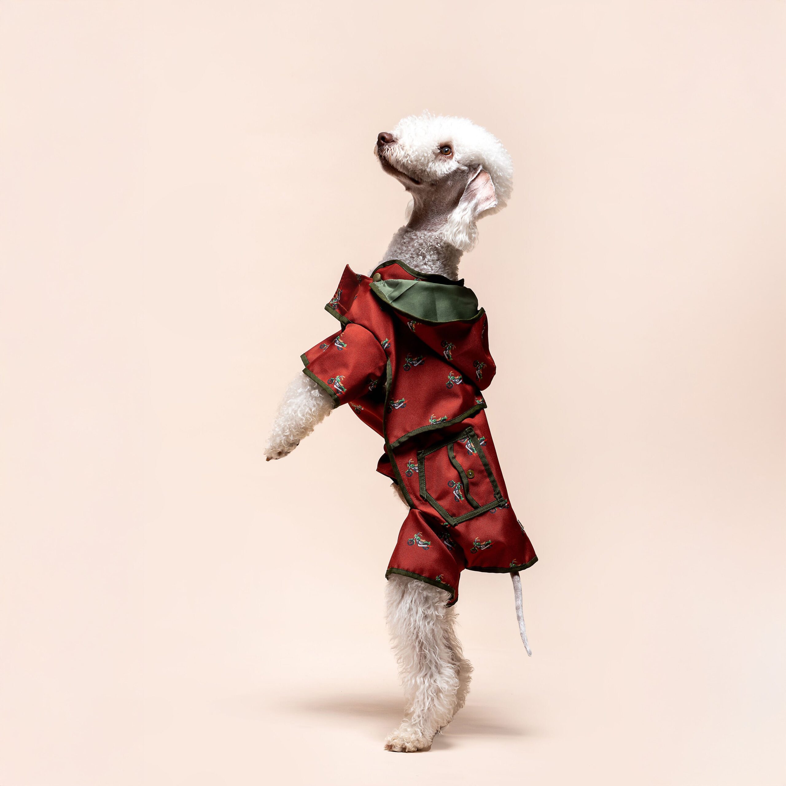 A víztaszító anyag gondoskodik róla, hogy a kutyus a hirtelen jött záporok alatt is száraz és kényelmes maradjon. A teljes testet takaró szabás nemcsak kiemeli a kutyus elegáns megjelenését, de extra védelmet nyújt a hűvösebb, szeles napokon is. A Harley egyszerre dinamizmust és játékosságot visz minden séta hangulatába.