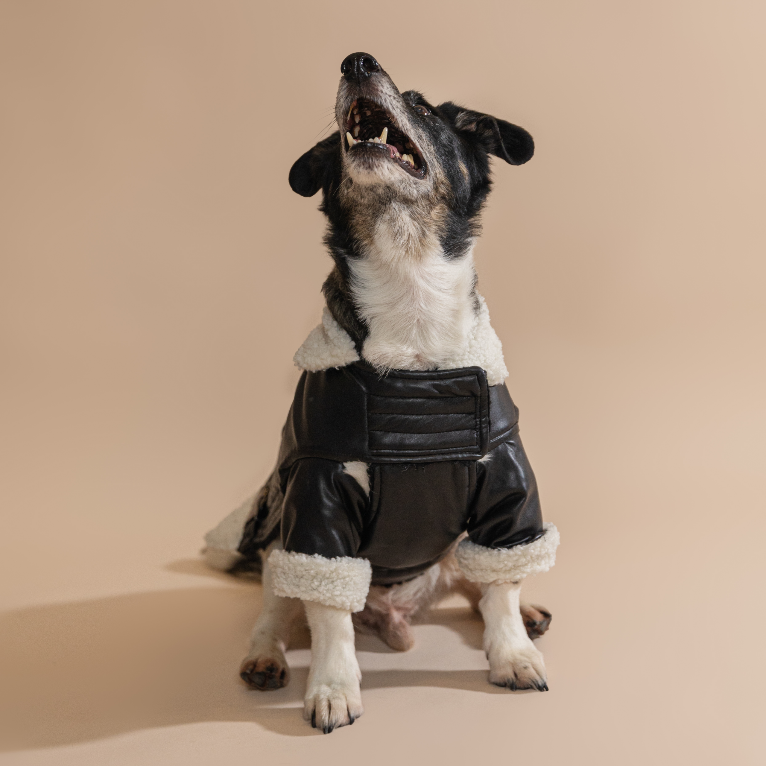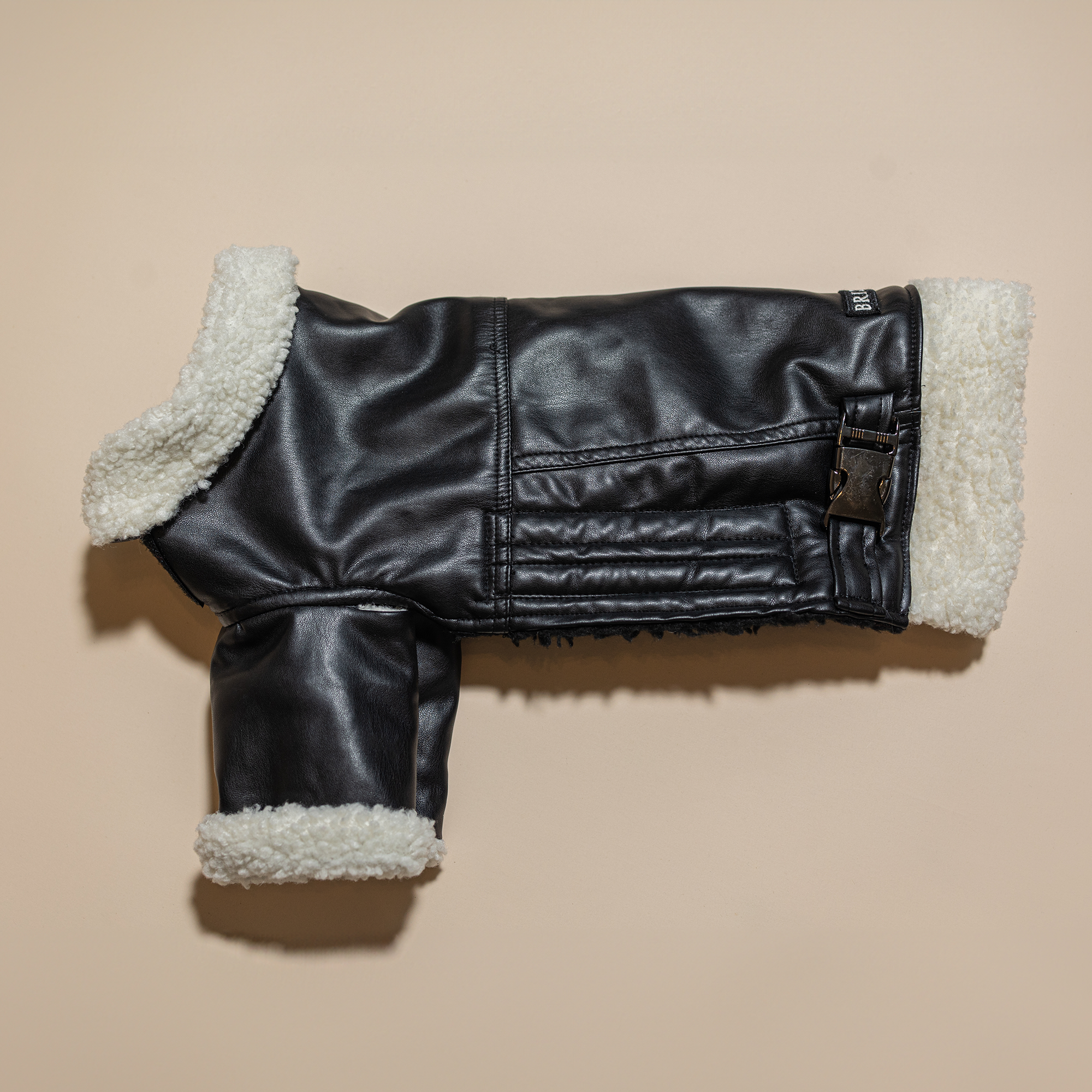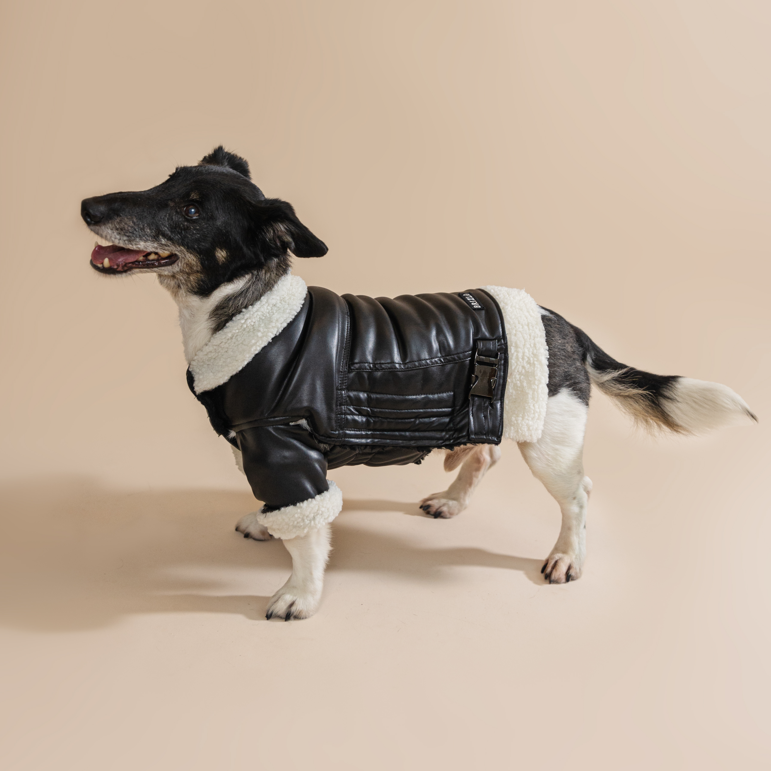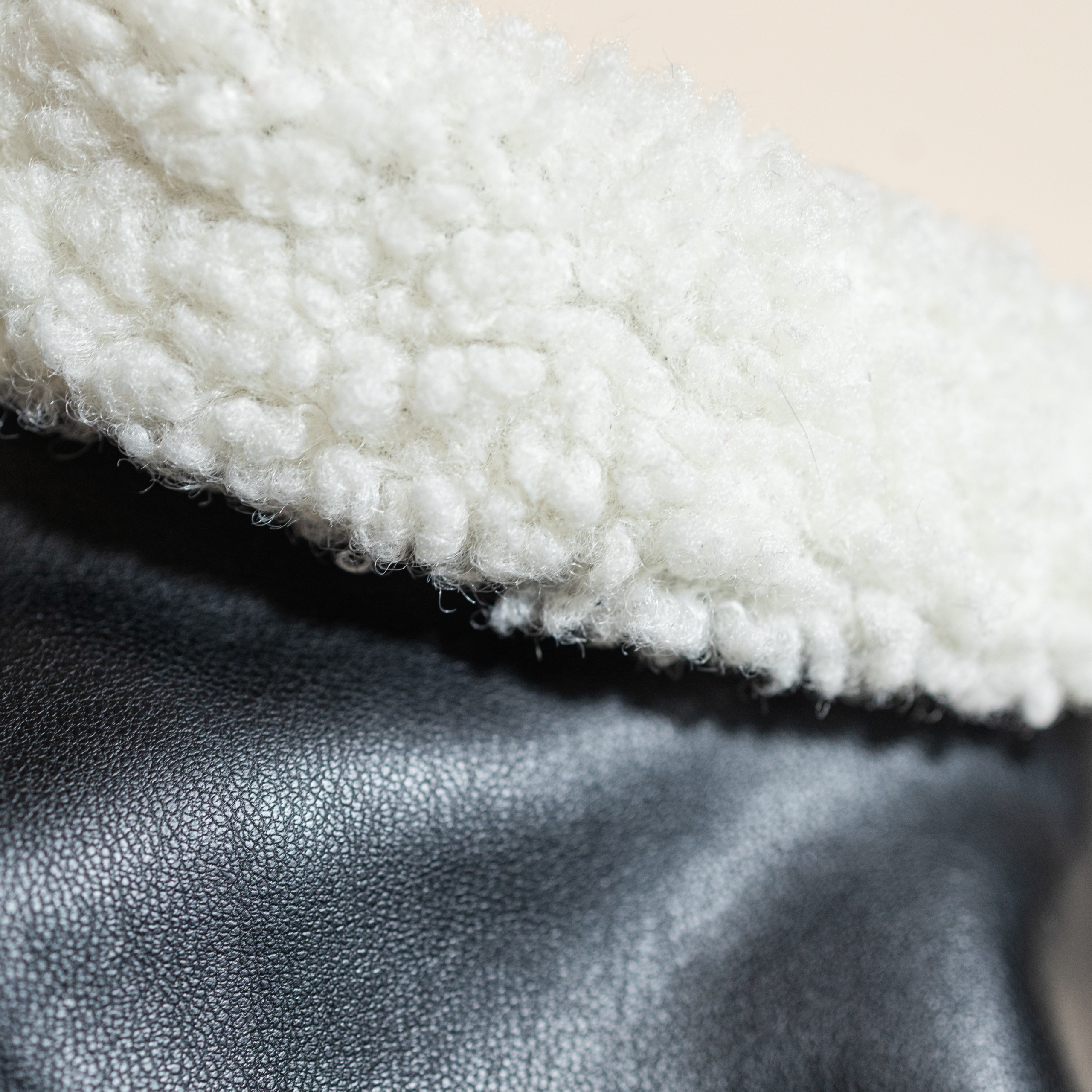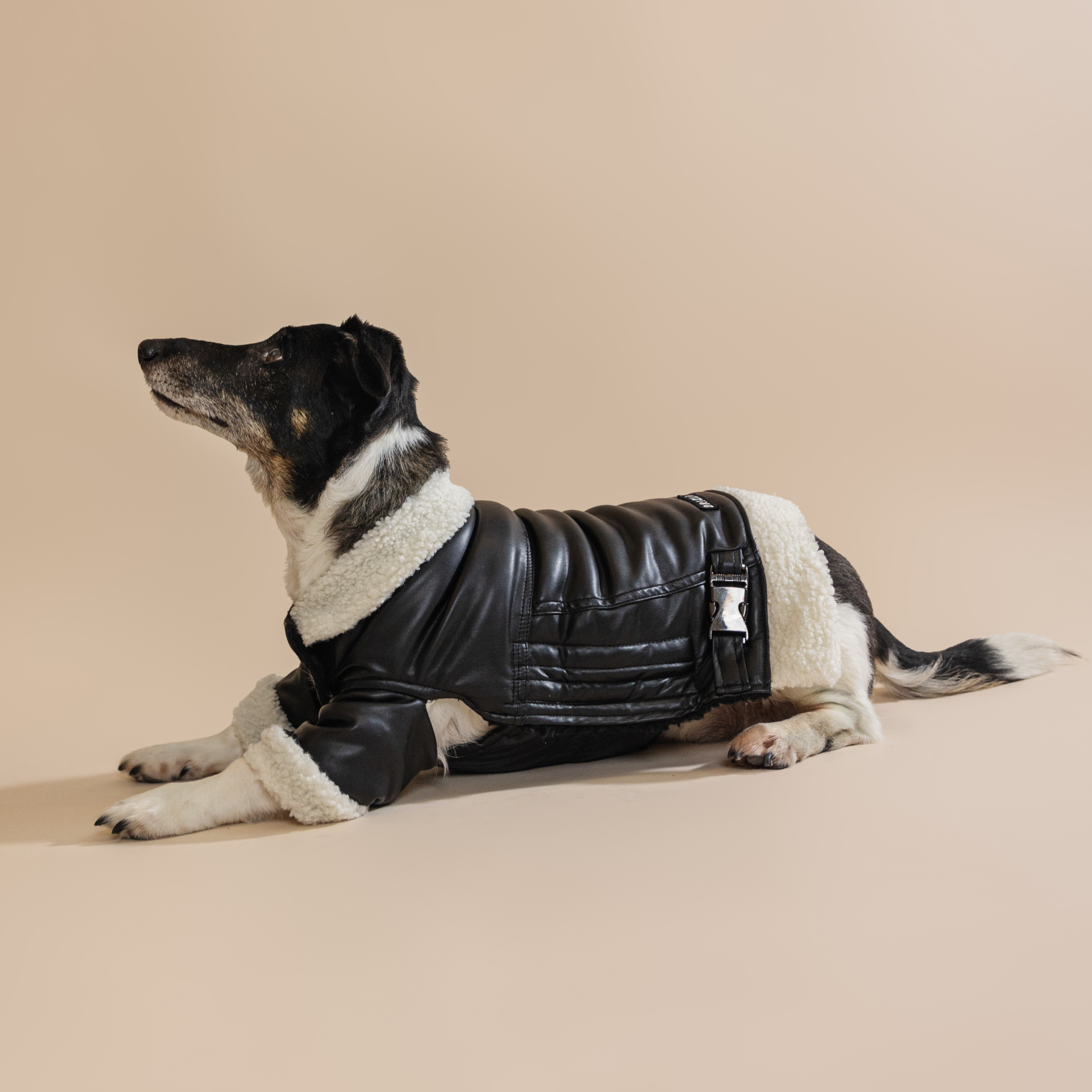 Snowmen prémium műbőr kabátunk ideális választás a hideg téli napokra. Hasonlóan egy minőségi emberi bőrkabáthoz, egy robosztus kiállást kölcsönöz viselőjének. Megjelenése már önmagában eleganciát sugároz, melyet belülről egy meleg, de mégis komfortos, puha tapintású törtfehér színű műirha bélel. Bélés a lábak, nyak és a hát vége mentén szegélyként megjelenik, ezzel erőteljes kontrasztokat létrehozva színben és textúrában. Fekete fém csatjaink finom és letisztult fémes csillogással, koronázzák meg az öltözetet, mely kifejezetten jó párosítást alkothat a gazda kiegészítőjeivel vagy pórázával.
