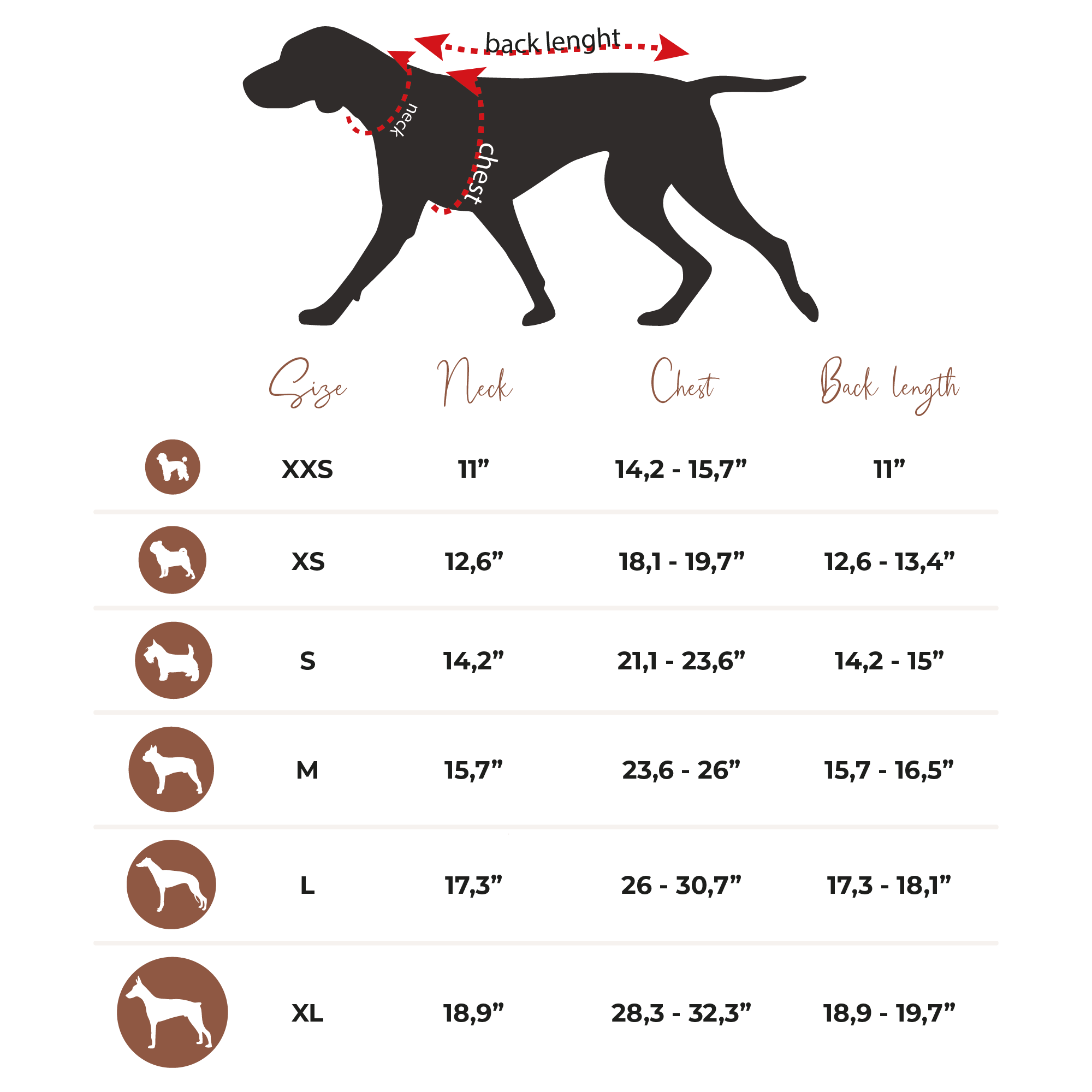 A praktikus tépőzáras megoldás gyors és kényelmes fel- és levételt tesz lehetővé, míg az állítható hasrész biztosítja a tökéletes illeszkedést. A Valentin így nemcsak egy öltözet, hanem szeretetteljes stílusnyilatkozat is – egy kabát, amelyben a kutyus valóban a szívek királya lehet.