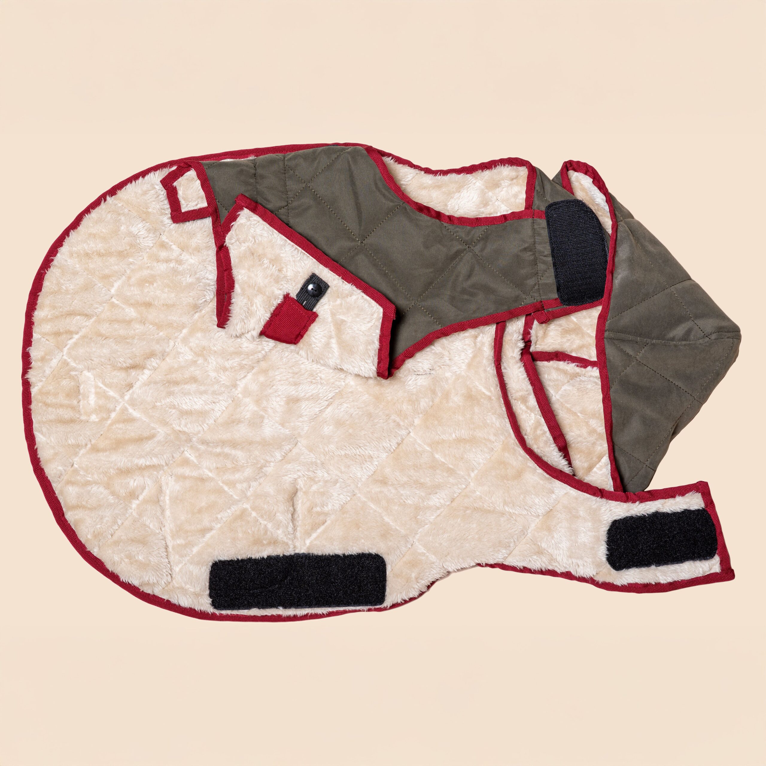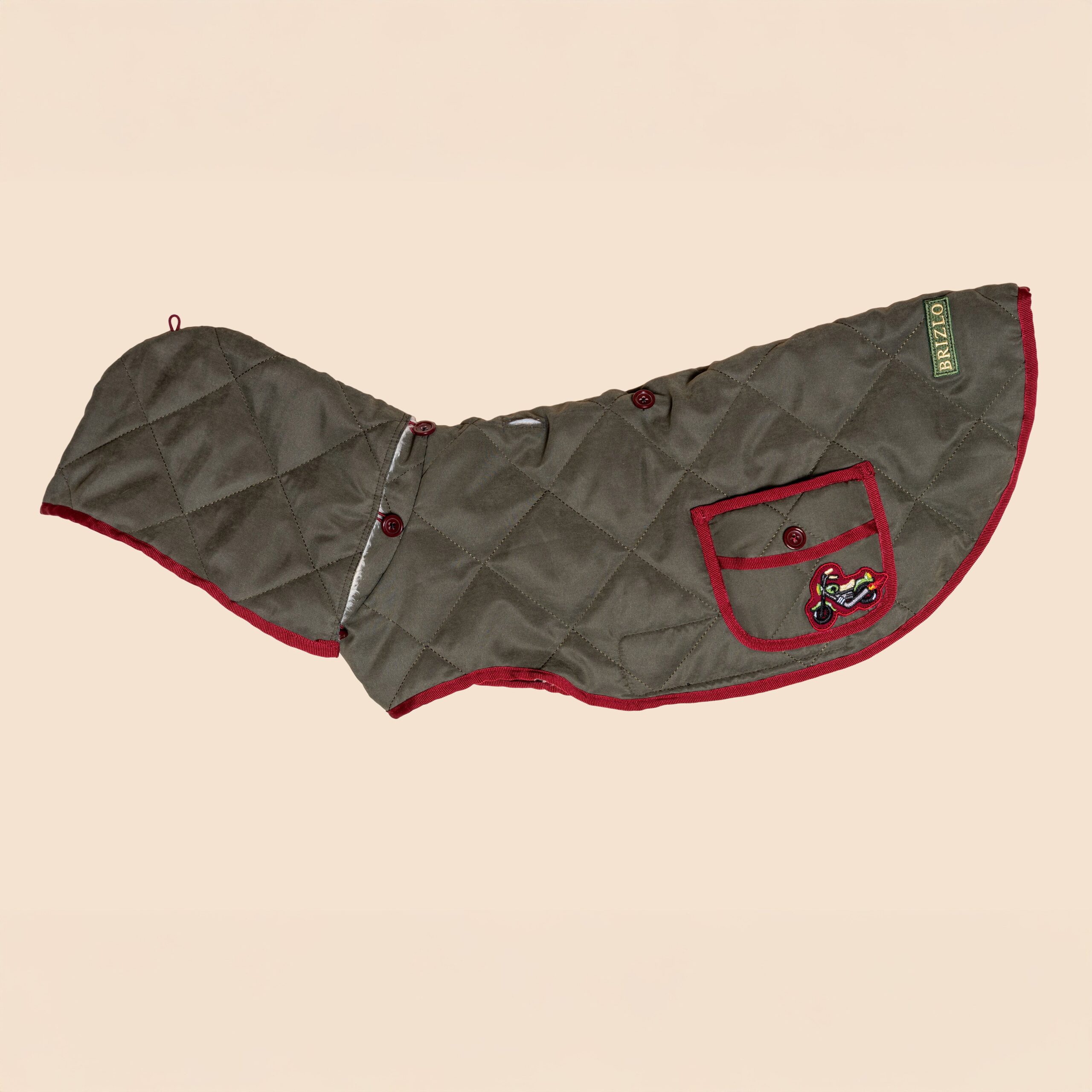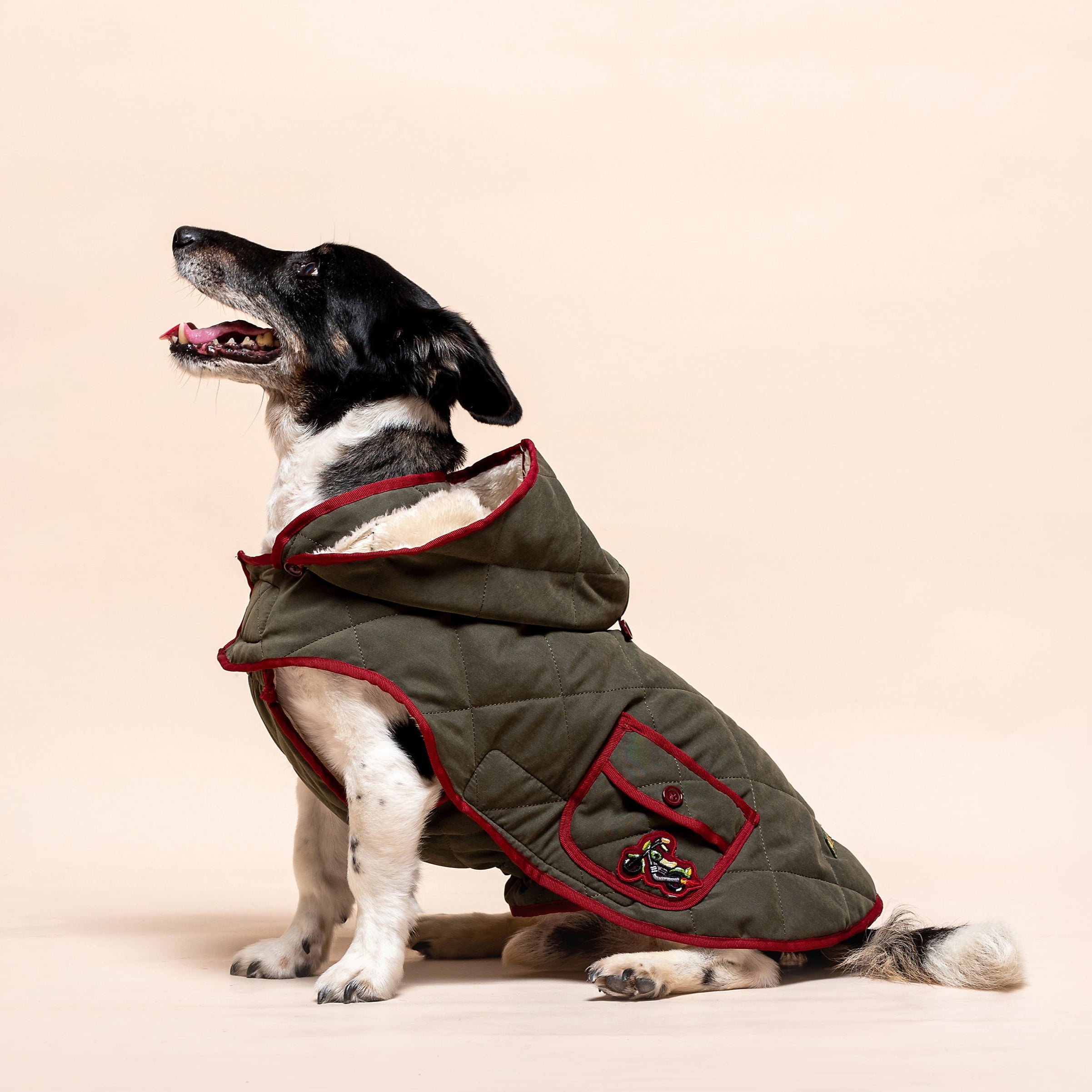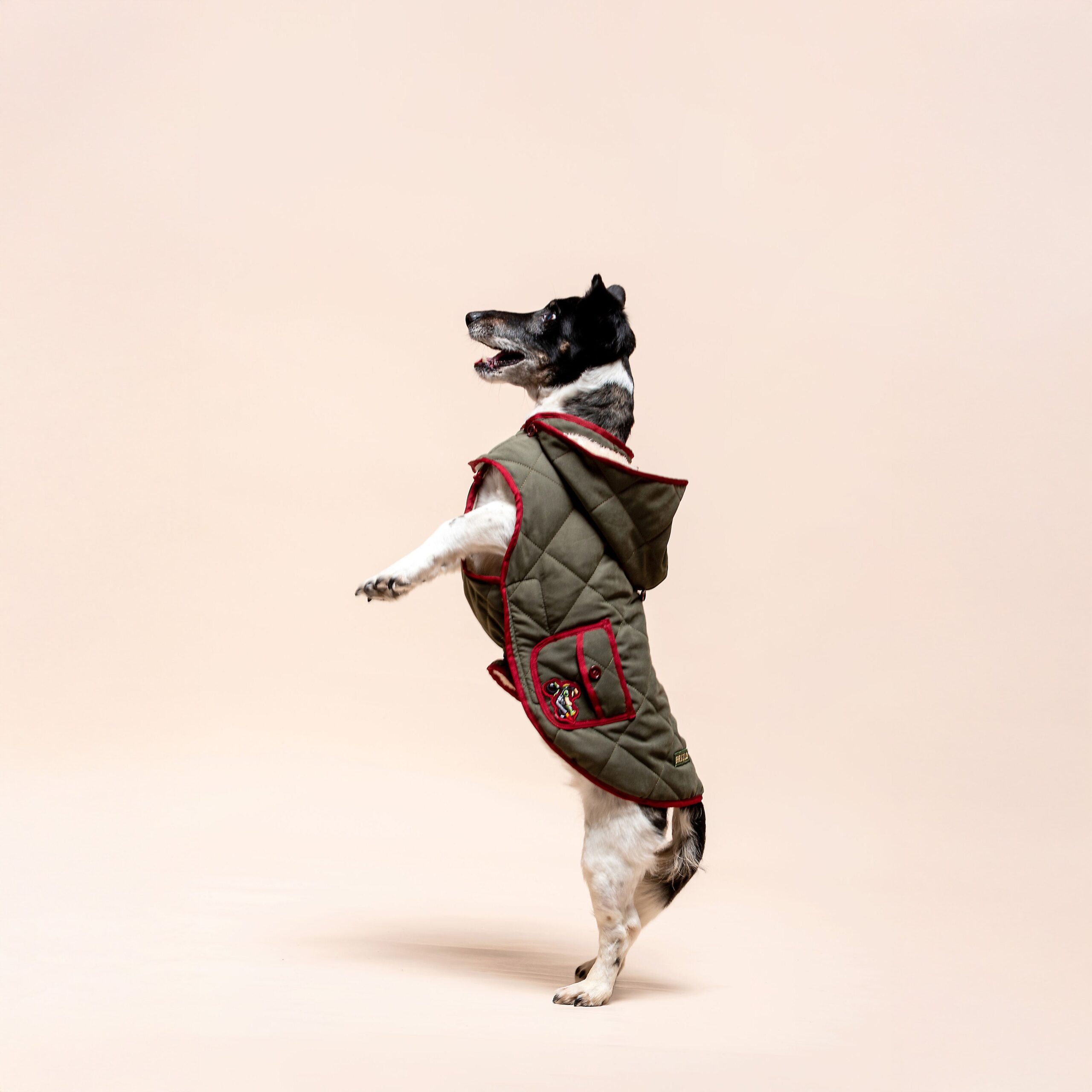 A Wild Ride kabát a Wild Cherry kollekció karakteres darabja, amely sportos és vagány megjelenésével minden kutyasétát különlegessé tesz. Az olívazöld alap és a bordó szegélyek kontrasztja időtlen eleganciát sugároz, míg a hímzett részletek játékos lendületet visznek a kabát stílusába. Ez a modell a kollekció legdinamikusabb darabja, azoknak a négylábúaknak, akik mindig kalandra készen állnak.
